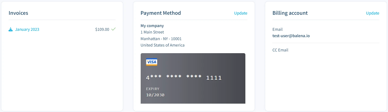 Users can determine which invoices are overdue under their organization's billing page. To settle overdue payments, update your payment method or contact the customer success team at solutions@balena.io.