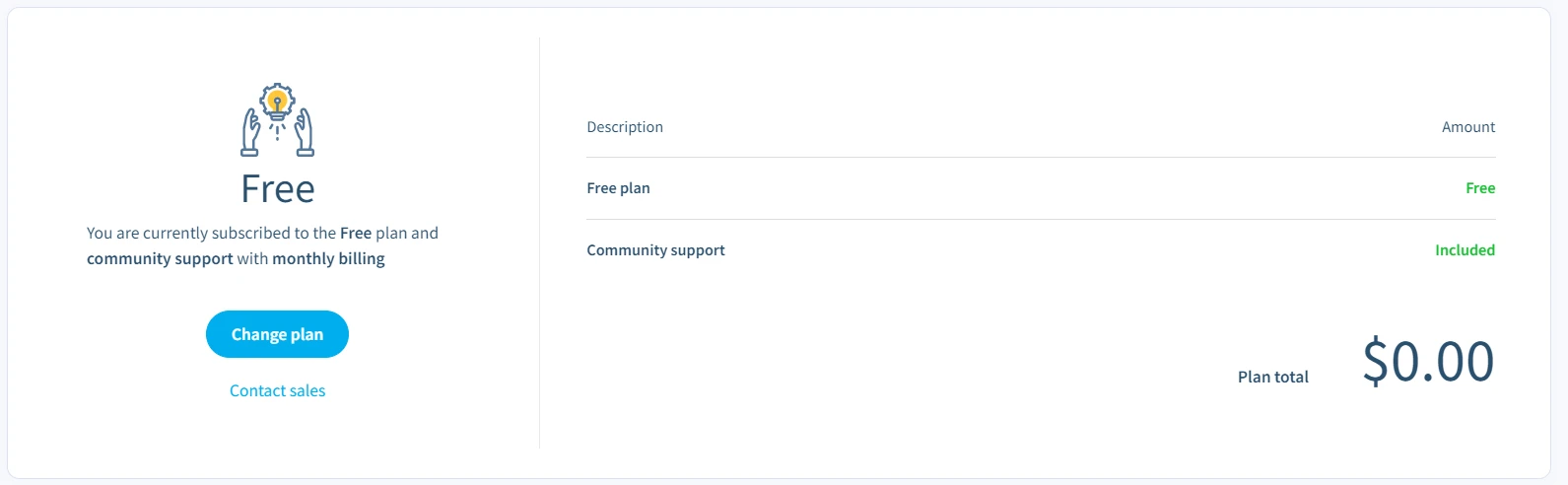 From this dashboard, you can change your billing plan, update your billing information, monitor your usage, and download invoices. If you have any questions about billing for your account, please contact our customer success team.
