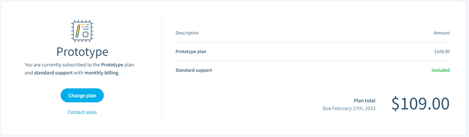 At the bottom of this page, you'll find more information on the available plans, and you can change plans as necessary.