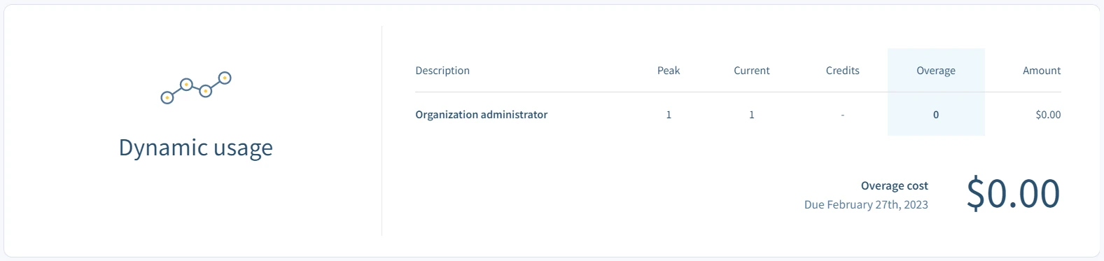 Any usage above what is included in your current billing plan or covered by credits will be tracked and billed dynamically in arrears. Dynamic billing will occur every month, even for those on annual plans.