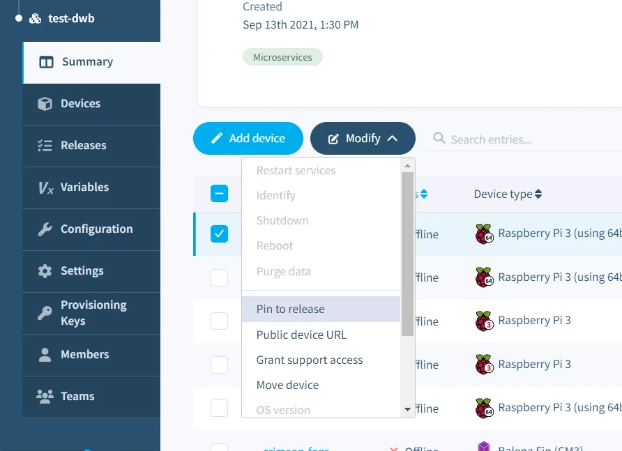 When managing a fleet, you may require devices to be running different releases. By default, fleets follow a rolling release policy where new releases are deployed to all devices in the fleet once successfully built. However, you can customize this behavior, so the fleet or individual devices remain on a fixed release, by utilizing release pinning.